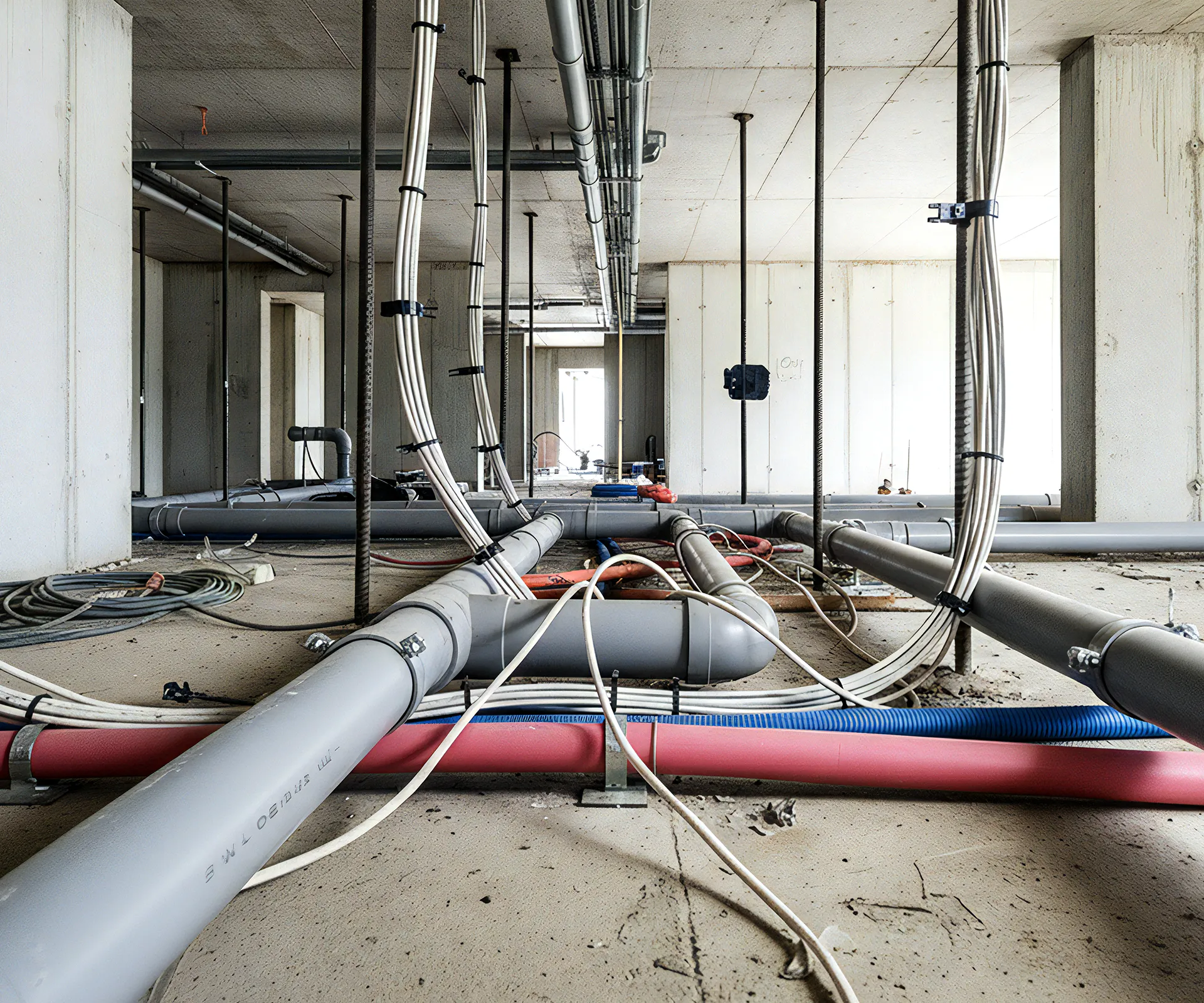 各住戸への給水・給湯・排水に関わる配管工事を行います。建物全体の設備計画に基づき、図面を確認しながら配管の配置や接続を進めます。