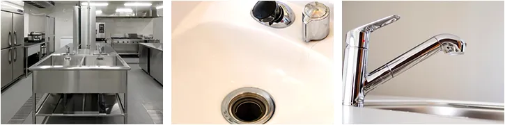 飲食店などの厨房設備に関わる水回りの工事を承ります。シンクや給湯器、食器洗浄機などの設備を設置するための配管工事や、既存設備の入れ替え時の配管の接続変更などに対応しています。